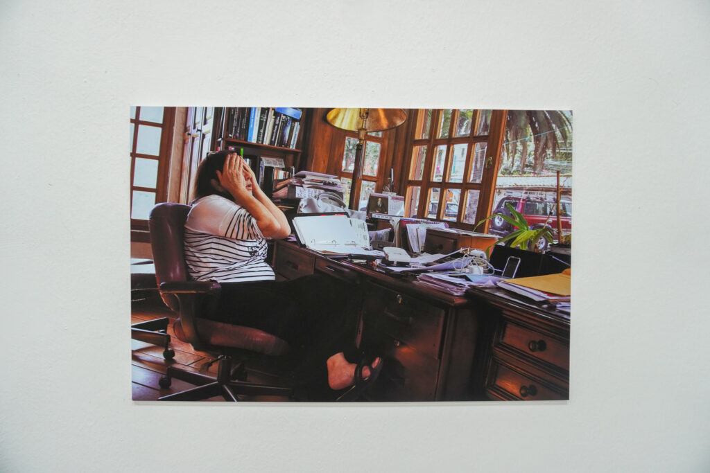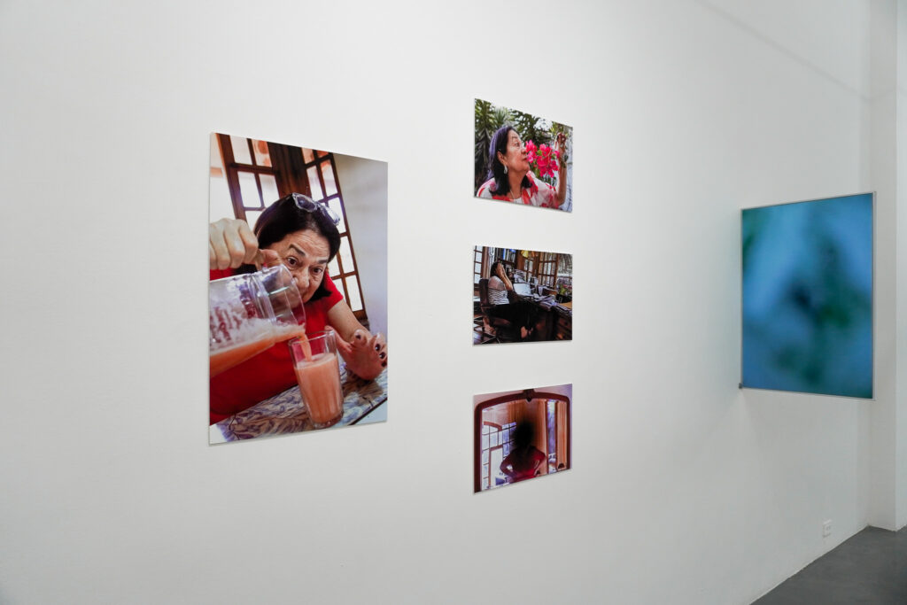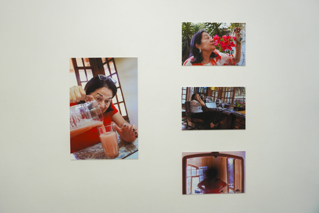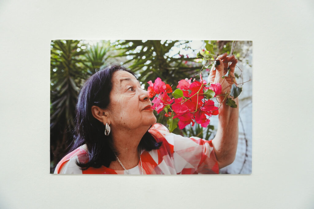 Esta es una historia familiar. Empieza cuando a Elena le diagnosticaron degeneración macular. Esta serie fotográfica empieza con la intención de una hija por acompañar a su madre, pero ¿cómo ver lo que no se ve? ¿Qué queda de lo que sí ve? ¿Cómo interpretar la mirada de alguien más? Esta exhibición tiene imágenes con distintos registros. Hay fotografía documental, pero en varias se filtran la especulación y la ficción, porque para acercarse lo más posible a la mirada de Elena, Paola manipula los lentes para que una mancha negra aparezca en todas las imágenes que enfoca, inventa dispositivos para que las imágenes se distorsionen, fotografía la luz de la noche, fotografía los espacios amplios donde su mamá se siente mejor, fotografía los objetos que entran en la nueva cotidianidad del hogar, fotografía el jardín, fotografía a la familia. Fotografía y también escucha. Este es un experimento visual y sonoro por los ojos de Elena, imaginados desde los ojos de Paola y recorridos por los ojos de todos nosotrxs.