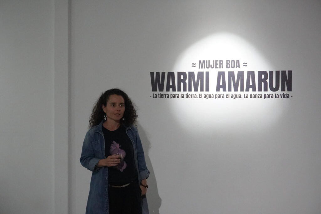 Q Galería tiene el gusto de presentar Mujer Boa – Warmi Amarun, con la dirección artística de María José Bejarano y la Producción Ejecutiva de Milena Rodríguez Castro. Esta muestra es una invitación a escuchar con el cuerpo, a danzar desde el cuidado y la relación. Un encuentro sensible entre la Danza Movimiento Terapia Comunitaria y los bailes tradicionales kichwas de la comunidad de Shandia, Napo.