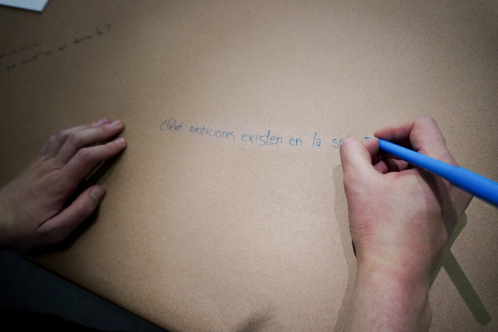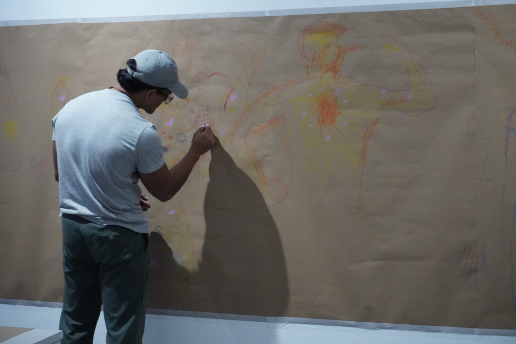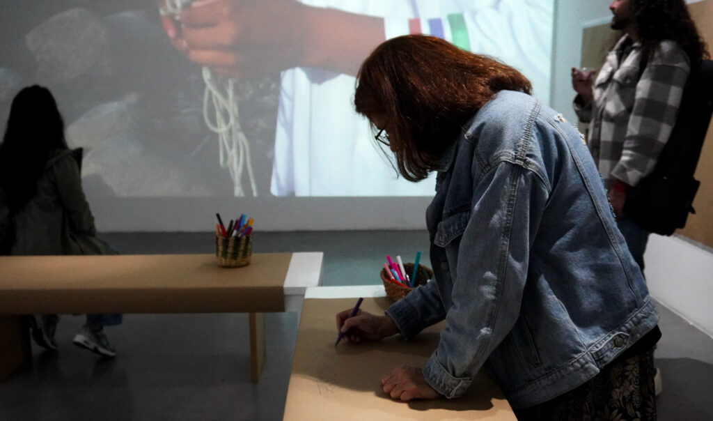 Durante la muestra “Warmi Amarun” realizamos actividades basadas en el reconocimiento corporal a través del dibujo y la pregunta por “el otro” junto a la carrera de danza de la universidad Central, y clases de Autoconocimiento y filosofía de la mente de la Universidad San Francisco