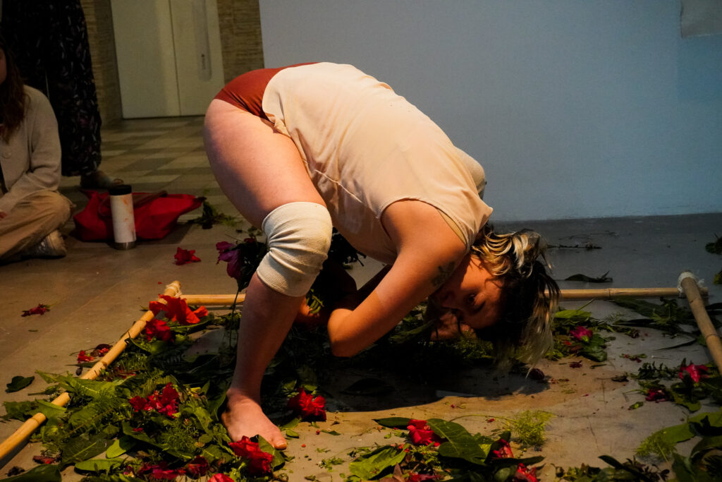 La presencia humana en territorios tan hostiles tiene casi siempre una actitud de dominio antropocéntrico, sea para explotar sus recursos naturales con fines económicos o con la idea de conocerla desde el punto de vista de la ciencia. Lejos de esto, la presencia de las artistas y su quehacer diario, planteó una adaptación y contraposición de las dinámicas y metodologías artísticas a las científicas. Los recursos de la estación, tanto humanos como técnicos, su dinámica y los condicionantes del medio natural promovieron un método de trabajo que derivó no solo en el intento de supervivencia del acto artístico, tan deslocalizado, sino en una dinámica de cuidado entre las artistas, un desarrollo de estrategias colaborativas y un aprovechamiento del entorno que derivó en el conocimiento de éste y una simbiosis desde el respeto y la exploración.