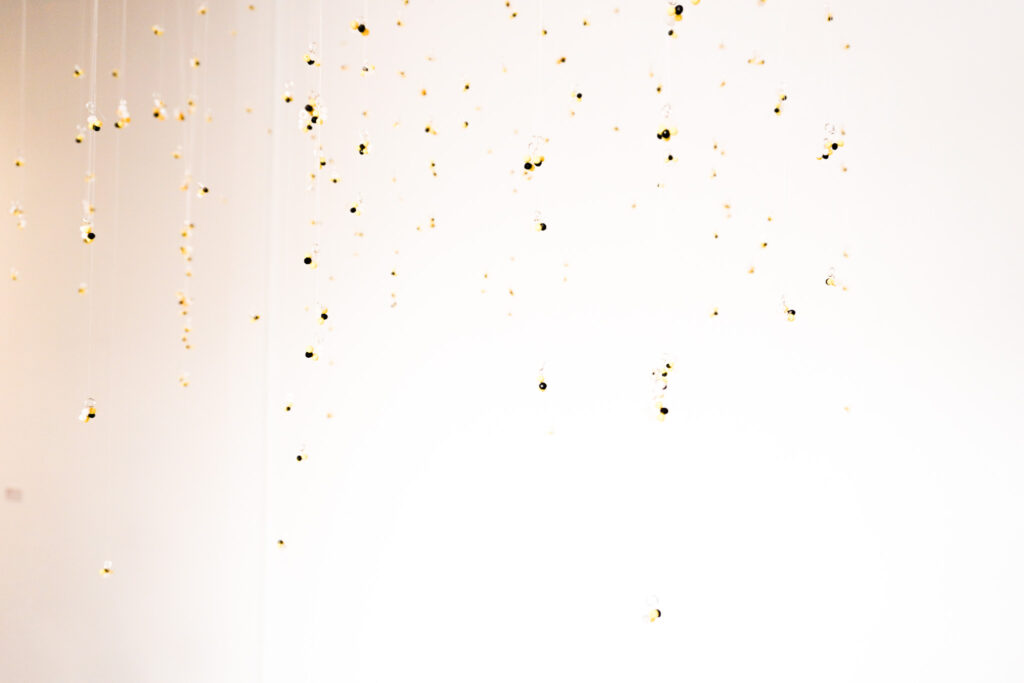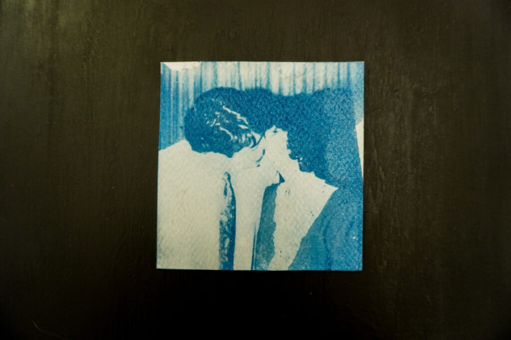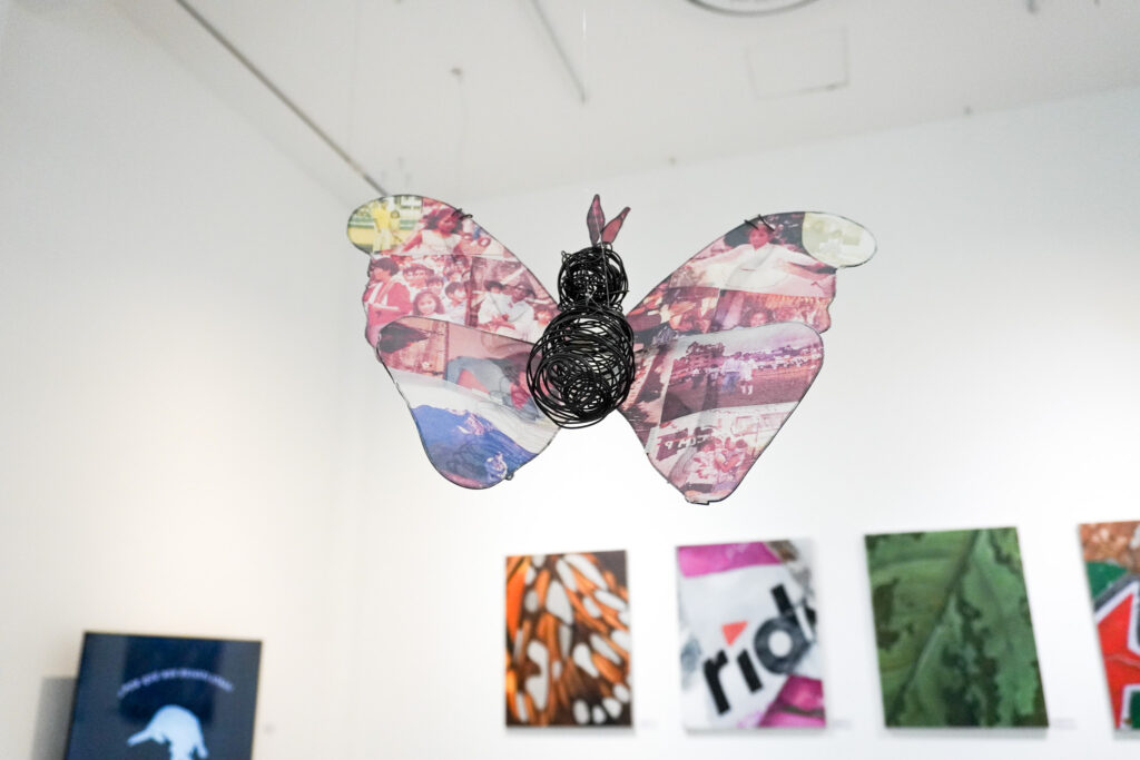 Ensamblaje, fotografia traslucida sobre alambre de amarre.