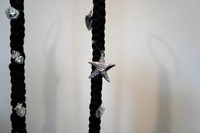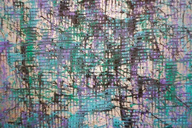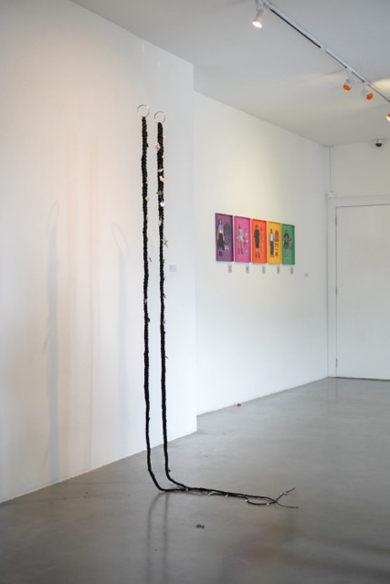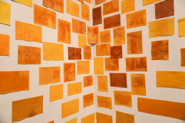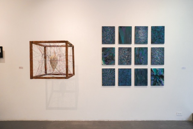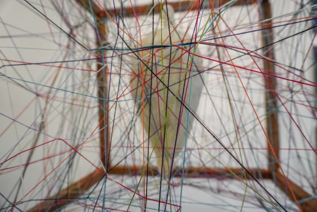Ensamblaje, fotografia traslucida sobre alambre de amarre.