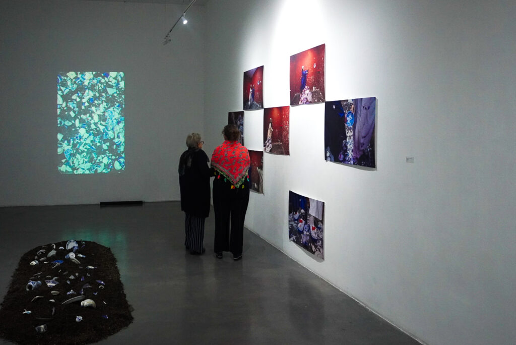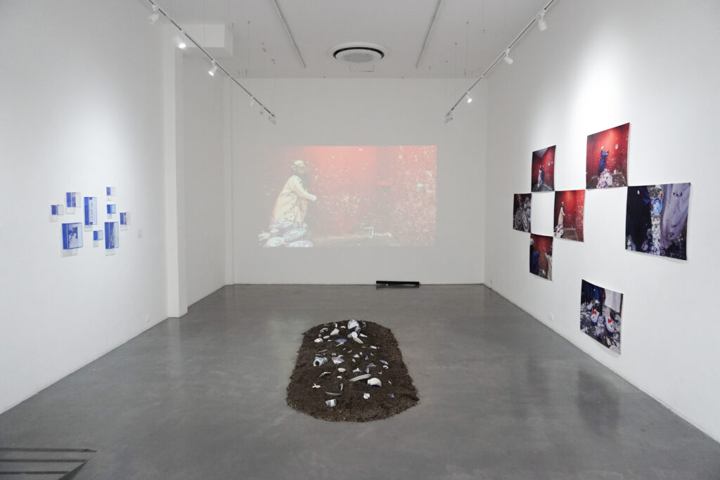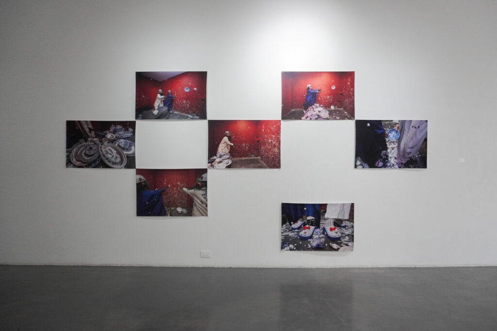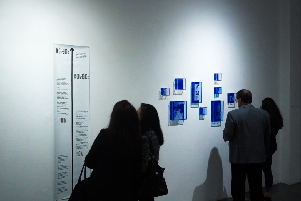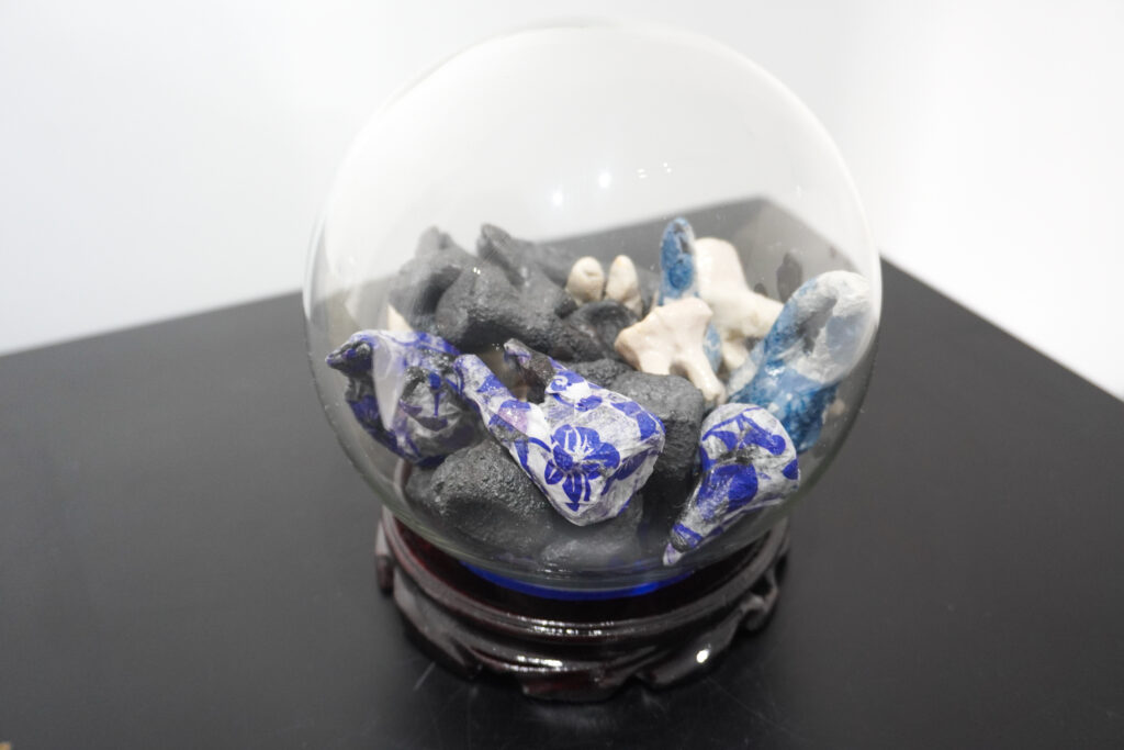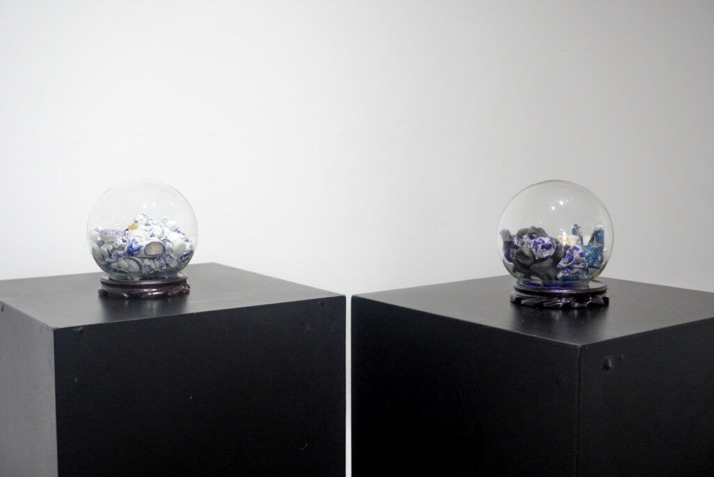 La exposición se basa en la reciente colaboración curatorial de Chong y Goffe, A Silence So Loud, presentada la primavera pasada bajo el auspicio de Dark Lab, la organización de investigación fundada por Goffe, en Tiger Strikes Asteroid, Brooklyn, Nueva York. La exposición fue concebida para revelar las vastas y complejas fracturas, silencios y omisiones producidas por la colonización, a través de una serie de activaciones multisensoriales que incluyeron performance culinarias, collage, video e instalaciones sonoras. En Q Galería, varios nuevos cuerpos de obra amplían las investigaciones iniciales de Chong sobre la circulación de la cerámica azul y blanca. En conjunto, ambas artistas transmiten la complejidad de sus experiencias transnacionales, trazando un recorrido que reconoce la fragmentación violenta sufrida por comunidades culturales colonizadas, la cual buscan reconfigurar y celebrar mediante la transformación de objetos familiares en intervenciones artísticas – globos de nieve, fotografías familiares y documentales, collage, vestimenta y un video recientemente concluido, dando lugar a archivos más precisos e inclusivos de sus legados culturales compartidos.